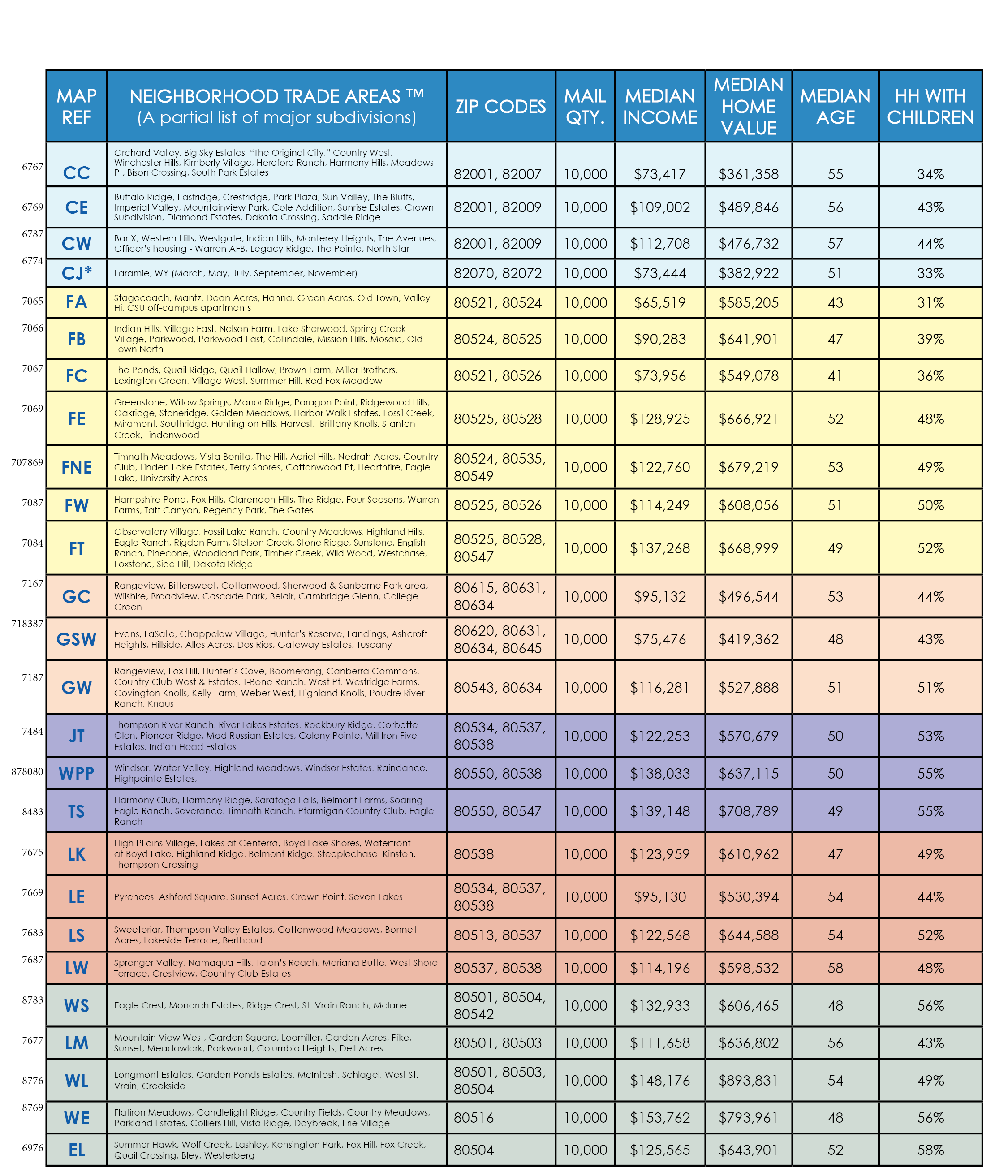 Our mailing lists are a step above lists generated by out-of-state, third-party companies. We compile our lists LOCALLY each month to ensure accurate delivery and to reach new homeowners in Northern Colorado & Southern Wyoming.
