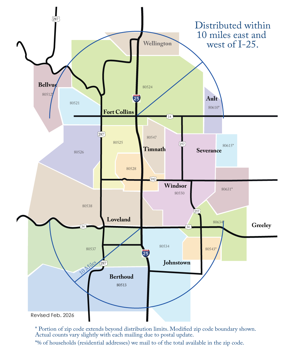 Contact us today for a free marketing consultation. We’ll walk you through how you can reach hundreds of thousands of qualified households across Northern Colorado and Southern Wyoming, including Fort Collins, Timnath, Loveland, Greeley, Evans, Erie, Longmont, CO, and Cheyenne, and Laramie, WY.
